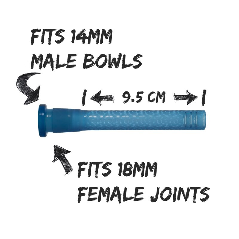These glass stems have been crafted with a vast array of slits at the bottom of the stem. This effectively breaks the smoke up into smaller ‘bubbles’ for extra efficient cooling and better tasting hits, happy days!