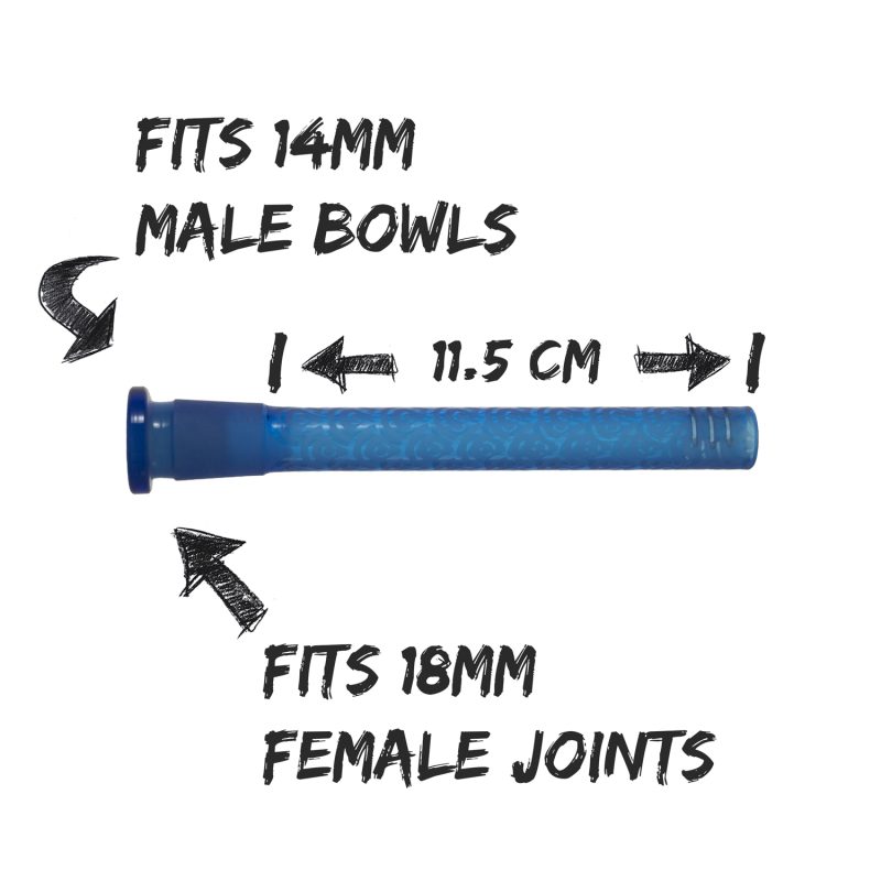 The Chongz 18.8mm to 14.5mm Diffuser Stem will fit any bong with a female 18.8mm joint and will take any bowl with a male 14.5mm connection.