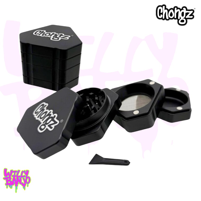 Introducing the Chongz “Trifecta” 44mm 4-Part Aluminium Grinder, a stylish, compact and brilliantly engineered accessory designed for smokers who want premium performance in a bold, modern form. With its distinctive triangular silhouette, magnetic interlocking system and vibrant metallic pink finish, the Trifecta stands out immediately—not just for its looks, but for the clever functionality built into every layer. Lightweight yet robust, compact yet powerful, this grinder is the perfect blend of practicality and personality, bringing a fresh twist to the classic Chongz grinder lineup.