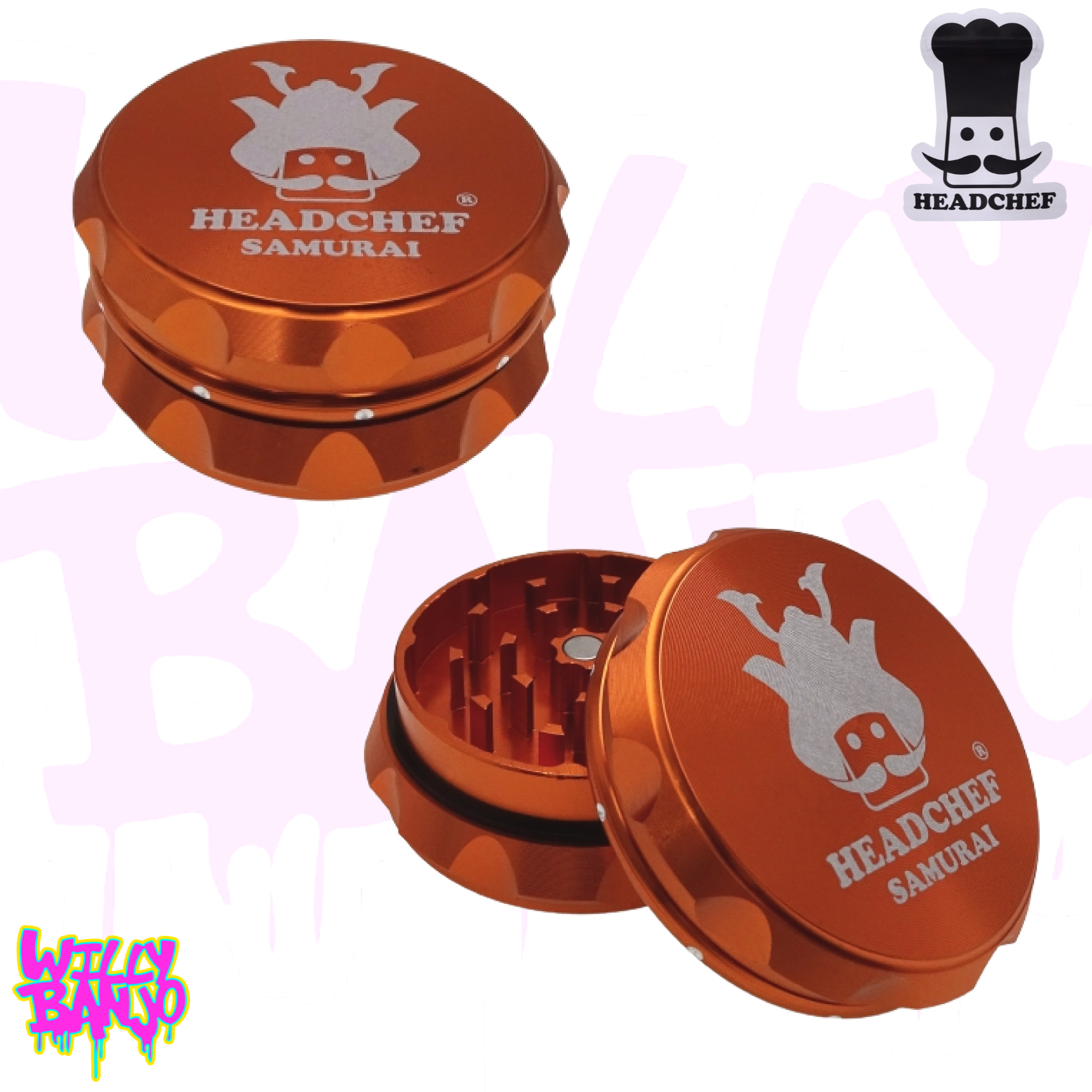 Grind your herbs quickly and efficiently with the Head Chef 2-part metal grinder, brand new, built to last, and available in four bold colours: Black, Orange, Purple, Green. Perfect for home use or on-the-go.