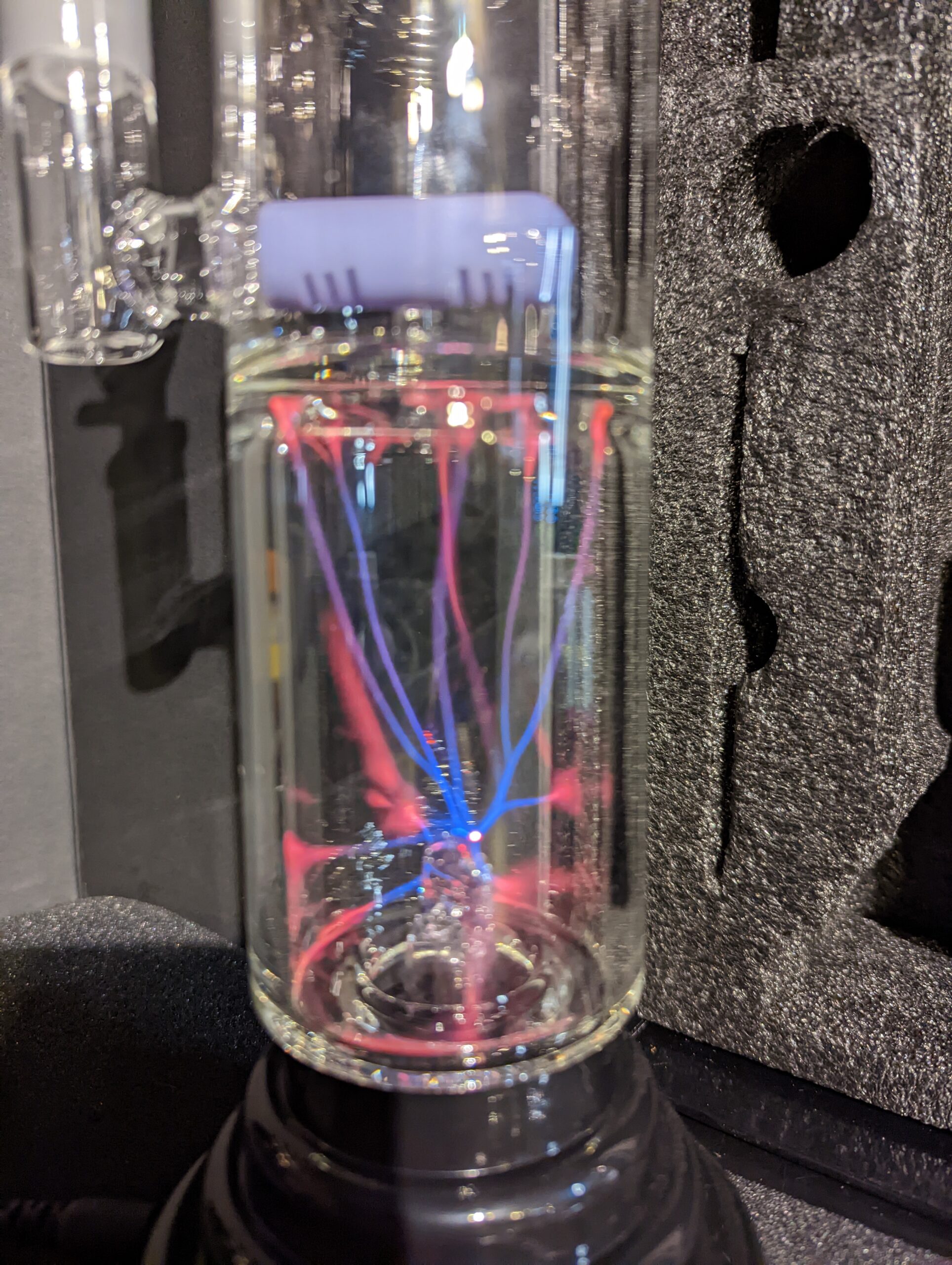With the slightly bent drawtube, you can then dab or rip the bong comfortably while enjoying the plasma spectacle.