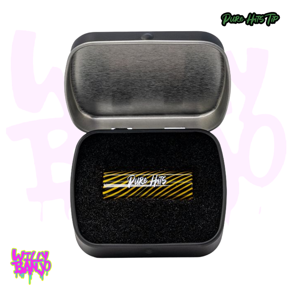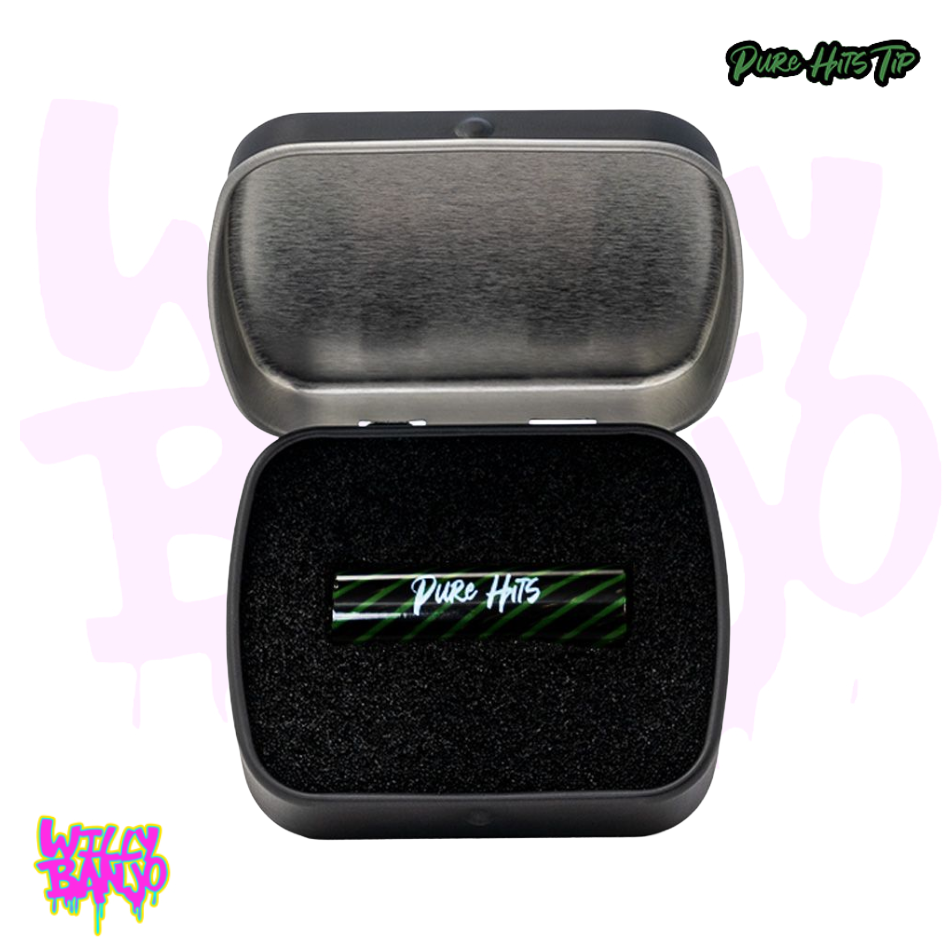 The Pure Hits Tip is made from 100% borosilicate glass featuring a premium construction and is eco-friendly thanks to its reusable nature. This slick glass tip is our most affordable version of the Pure Hits Tip line, in classic clear glass adorned with the black Pure Hits logo.