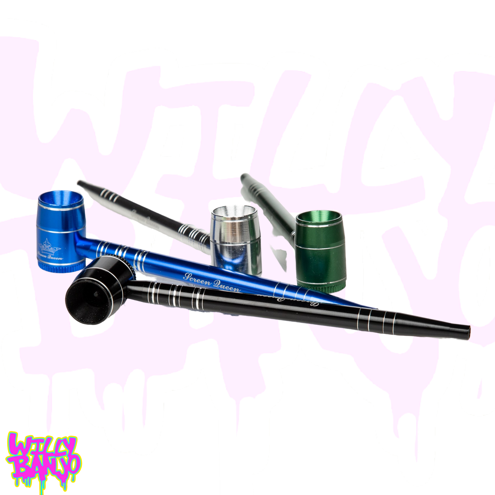 The Screen Prince Pipe doesn’t clog up thanks to the built-in screen. It is quick to clean as all parts are screwed together, and can be disassembled easily. The bowl has a small wheel on the bottom that you can turn to determine the distance to the upper rim. This means you can customise the amount of airflow to exactly how you want it! The thin tube prevents the inhalation of ash particles, ensuring a smooth smoke every time. The Screen Queen Pipe comes in a protective case with padding, so you can take it out and about without damaging it.