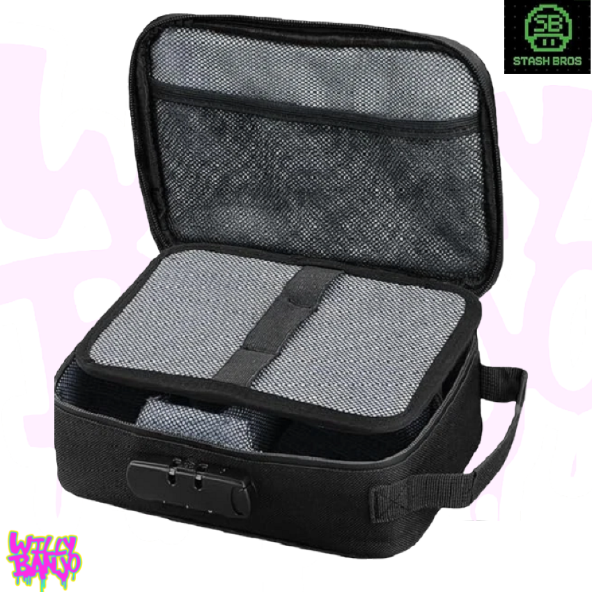 This lockable bag, fortified with a sturdy combination lock, ensures your secrets remain sealed and secure and is equipped with removable dividers, allowing you to customise and compartmentalise your essentials effortlessly in our stash bag.